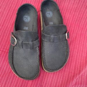 Birkenstock Black Leather Mules with Buckle