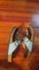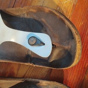 This pair of shoes does have significant wear. There is some damage to the cork on both shoes. The upper is slightly discolored. The footbed on the left shoe has some damage. Please see pictures.