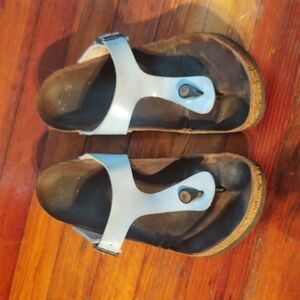 Birkenstock Blue Leather Upper With Toe Thong Sz 42 Regular Width