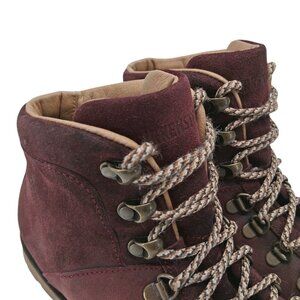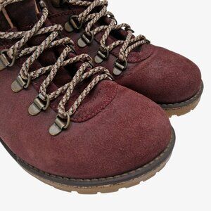Birkenstock Boots Womens Size 7 Burgundy Suede Lace Up Hiking Made in Germany