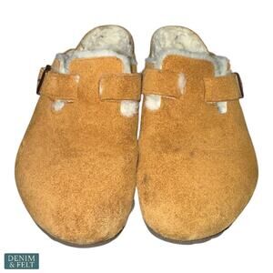 Birkenstock Boston Shearling Camel Suede Fuzzy Cozy Slip On Clogs Womens 7