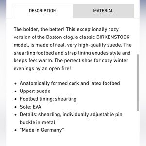 Birkenstock Boston Shearling Suede Leather Boston Clog Size 7 NEW