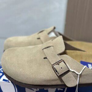 Birkenstock Boston Soft Footbed Suede Leather-Taupe Women's Shoes