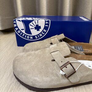 Birkenstock Boston Soft Footbed Taupe Suede Wide