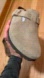 Birkenstock Boston in Taupe suede. Unisex size 40 EU. Overall very good condition. Cork is like new. Only worn indoors. Minimal wear, most notably on the insole which is common for used Birkenstocks. Feel free to reference the Birkenstock website for more details if needed.