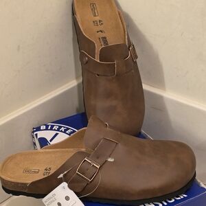 Birkenstock Boston softbed, brown, men size 12, regular width, new. Boston model gently wraps around the foot and thus offers secure protection. The anatomically shaped footbed gives the foot a natural grip. The flexible EVA sole gently cushions every step and is extremely durable.