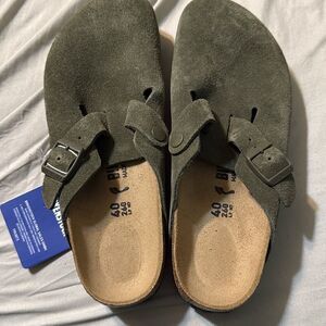 Birkenstock Boston Soft Footbed Suede Leather - Olive Green 9