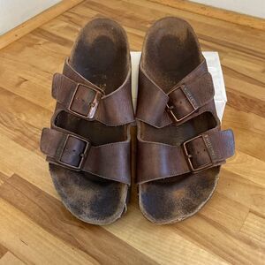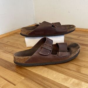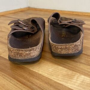 Birkenstock Brown Leather Two Strap Slide On Sandals Size EU 38