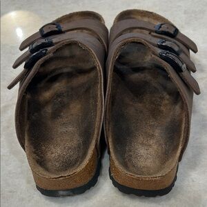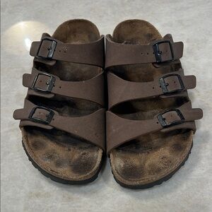 Comfortable brown sandals with three adjustable straps. Ideal for daily wear. These are either a 9 or 91/2. I think they say 40 on them. Either way they are too small for me 😂