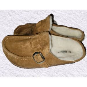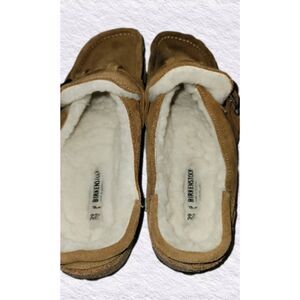 Birkenstock Buckley Shearling Clogs Women's 39 Brown Slip On Square Toe. Water damage up top of shoe.