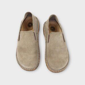 Birkenstock Callan Suede Slip On Flats - EU 38 Ladies 7 - Taupe suede upper with cork midsole and EVA sole - Like new, worn 1x (retail return)