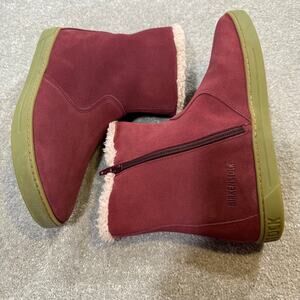 Birkenstock EUC Lille Suede Fleece Lined Boots Red Zip Up Womens 7 EU 38 Winter