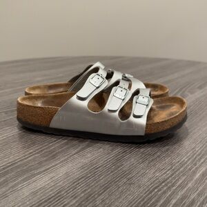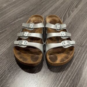 Birkenstock Florida Birko Flor Sandals Silver 3 Buckle