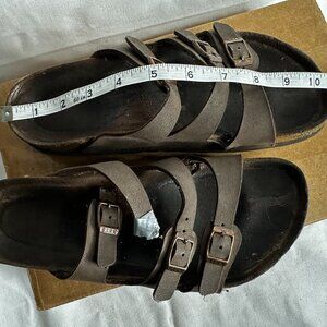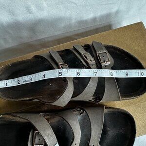 Birkenstock - Florida Sandals - Brown Leather Slip-ons - EU Size 42. These are damaged (see photos - need to be repaired).