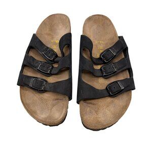 Birkenstock Florida Soft Footbed Oiled Leather Slides Sandals Women's 38 Black