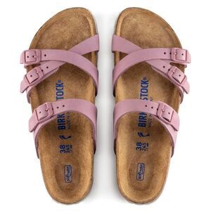 - Step into sleek comfort with these Birkenstock Franca Sandals in the limited Orchid colorway. Designed with slim, criss-cross straps and the plush Soft Footbed, this pair blends modern style with the legendary Birkenstock support you love.