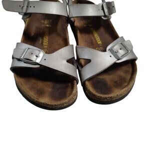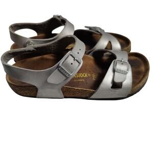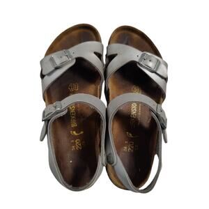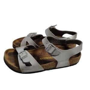Birkenstock Girls Sz 34 (Youth 3-3.5) Rio Silver Leather Sandals Heel Strap
