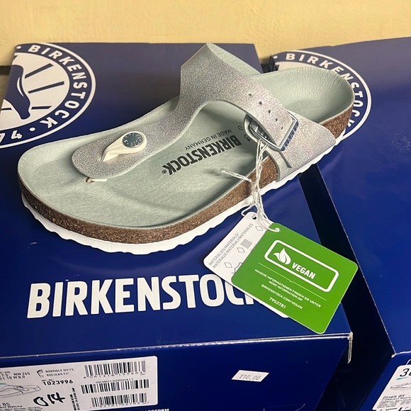 Birkenstock Gizeh BS Color: Iridescent Matcha normal/regular fit. Vegan