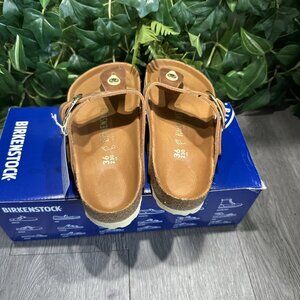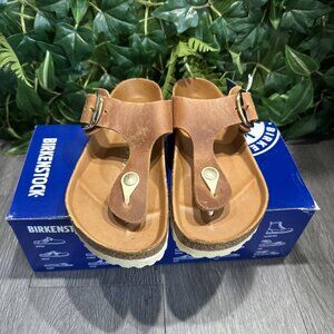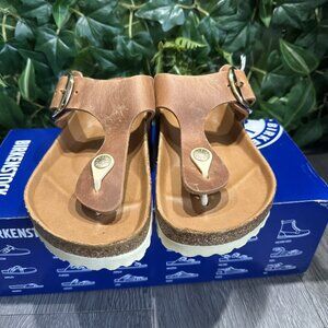 Birkenstock Gizeh Big Buckle Sandals Womens 36 Cognac Leather Strap Beach Summer