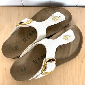 Birkenstock Gizeh Big Buckle Sandles Vegan Cream Canvas Gold Buckles Size 41/10