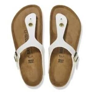 Birkenstock Gizeh Big Buckle Sandles Vegan Cream Canvas Gold Buckles Size 41/10
