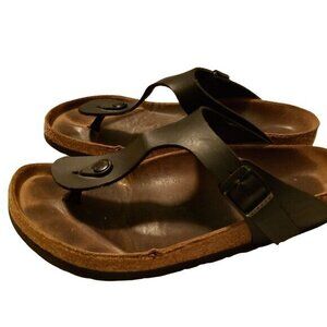 Birkenstock Gizeh Birko Flor Black T-Strap Sandals Shoes Size 39 8-8.5