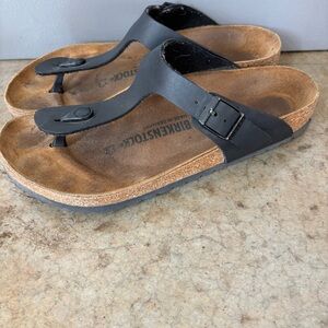 Birkenstock Gizeh Black Leather Sandals Size 40/9
