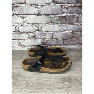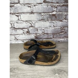 Birkenstock Gizeh Black Leather Thong Cork Strap Sandals Women Sz 37EU/6.5M US