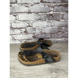 Selling Birkenstock Gizeh Black Leather Thong Strap Sandals Women Sz 37EU/6.5M US Preowned Marks of use and wear refer to pictures Beautiful sandals Strong Good soles Lots of life Fast delivery The Birkenstock Gizeh Black Leather Thong Cork Strap Sandals in size 37EU/6.5M US are a stylish and comfortable choice for women. With a flat heel and adjustable buckle strap, these sandals are perfect for everyday wear or special occasions. Made with high-quality leather and featuring arch support, these sandals are durable and lightweight, making them ideal for summer, fall, and spring seasons. The classic black color and lace accents add a trendy touch to these versatile sandals, perfect for travel, activewear, parties, or casual outings. Made in Germany by Birkenstock, these sandals are a reliable and fashionable option for any wardrobe.
