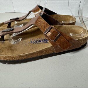 Birkenstock Gizeh Brown Comfort Summer Glitter Leather Sandals Size 40