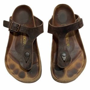 Gently worn women’s size 37 Birkenstock Gizeh brown leather t-strap sandals. All wear is demonstrated in photos, so please refer to them. Comes from a smoke free home, bundle with other items to save & minimize shipping cost.