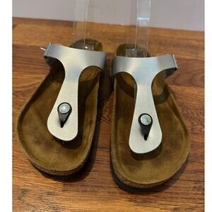 Birkenstock Gizeh Sandal Metallic Silver, Women's Size 37 Iconic Footwear