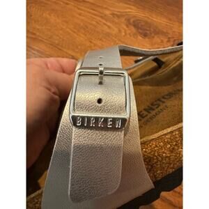 Step out in style with these classic Birkenstock Gizeh sandals. Crafted with high-quality materials and featuring a sleek silver finish, these sandals offer both comfort and sophistication. Perfect for everyday wear, these size 37 sandals will quickly become your go-to choice. Gently used, excellent condition.