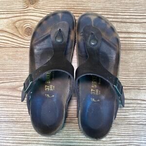 Birkenstock Gizeh Sandals T-Strap Bronze Metallic Leather Size 37 US M4 L6