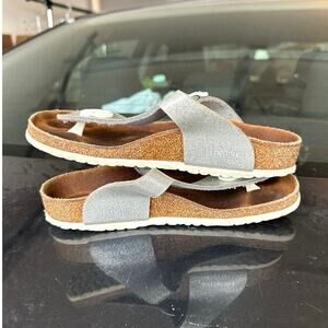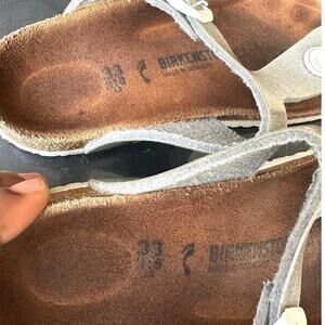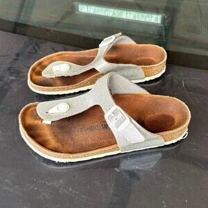 Birkenstock Gizeh Silver Metallic Thong Sandals Birk Size 33 US Size 2 Kids
