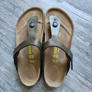 Birkenstock Gizeh Size 39 EU Bronze Metallic Leather Cork Thong Sandals Germany