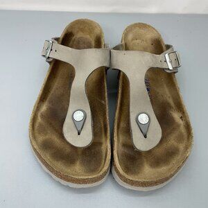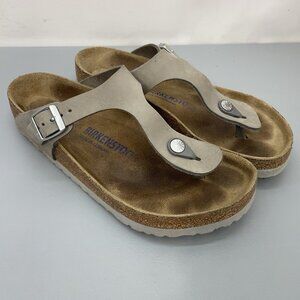 Birkenstock Gizeh Thong Sandals Leather Comfort Taupe Gray Womens 39 US 8 Regular Width