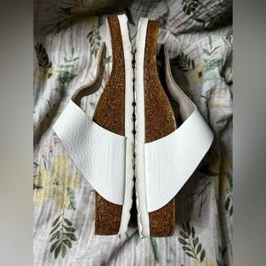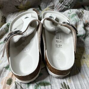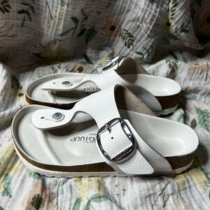 Birkenstock Gizeh White Pebbled Leather Big Buckle Sandals