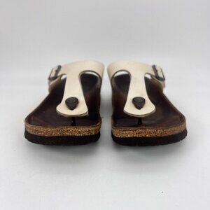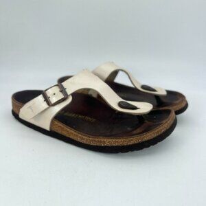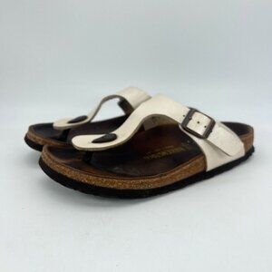 Birkenstock Gizeh White Birko Flor Leather Thong T Strap Women Sandal Size 7