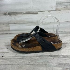 Birkenstock Gizeh Womens Birko Flor Sandal Suede Leather Black Brown Size 5