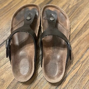 Birkenstock Gizeh Women’s Black Birko Flor T Strap Sandals Size 38 US 7 Hippie