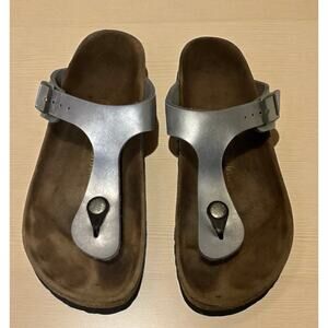 Birkenstock Gizeh Women’s Size 38 US 7.5 Silver Metallic Sandals