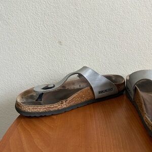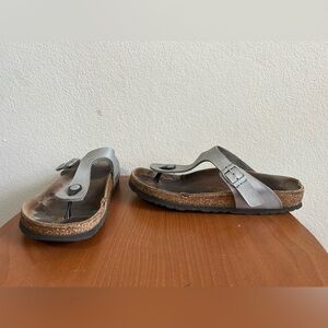 Birkenstock Gizeh Women’s Size 9 40 Metallic Slip On Birko-Flor Silver Sandal