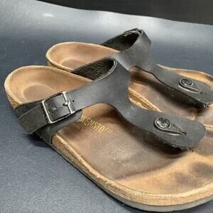 Birkenstock Gizeh Women's Sz US 7 EU 38 Black Thong Leather Sandals shoes