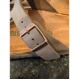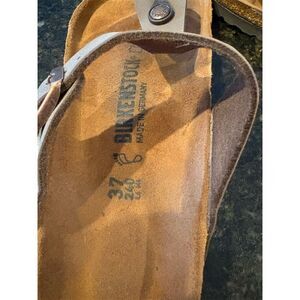 Keywords: Birkenstock, thong sandal, women's footwear, Brown sandals, casual summer shoes, Birko-Flor Nubuk, adjustable strap, cork footbed, lightweight EVA sole, size 37, pre-owned sandals, Germany-made, flat heel, buckle closure, ladies' sandals.