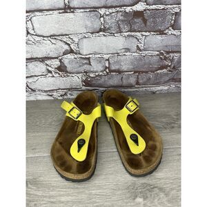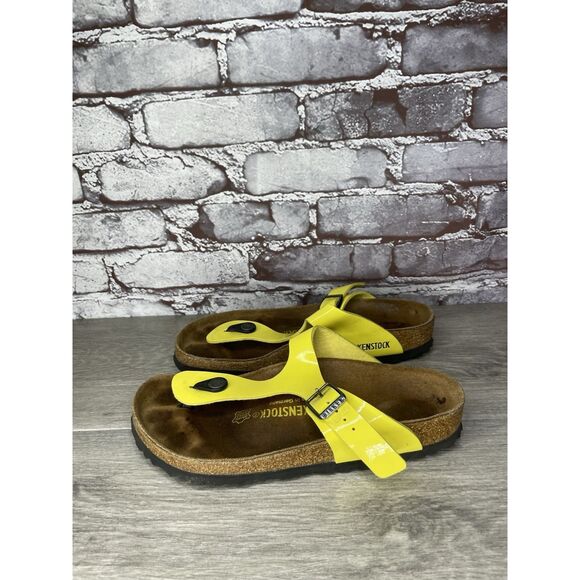 Birkenstock Gizeh Yellow Patent Leather Cork Slide Sandals Women Sz 37EU/6.5M US