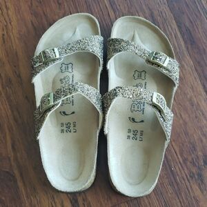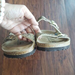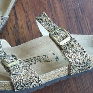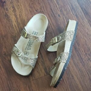 Birkenstock Glittery Gold Chic Feminine Comfy Casual Edgy Summer Sandals Size 38