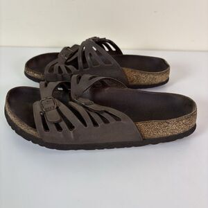 Birkenstock Granada Sandals Brown Leather Cork Footbed Well Worn Distressed ~40