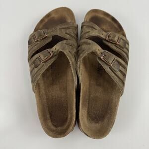 Birkenstock Granada Women's Sandals Strappy Brown Double Buckle Slip On Size 6? Unsure of size, not visible on shoe