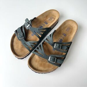 Birkenstock Granada with soft foot bed. Amazing slate grayish blue color. Seems to be a hard to find color. They have only been warn a few times on carpet. In excellent condition. Soles in like new condition. Size 38 and fits like a women’s US size 8. See Birkenstocks size chart for more information. Ships from a clean and smoke free home.